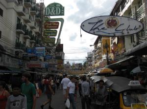 Nachdem wir dann nach ca 2h Schlaf endlich in Bangkok angekommen sind und wir eigentlich mit dem Bus fahren wollten und auch schon 3 Taxifahrer erfolgreich abgewimmelt haben, wurde Manu 1m vor dem Busticketschalter von einem weiteren Taxifahrer hypnotisiert und wir mussten fuer 400 Baht zur Khao San Road tuckeln :-P.