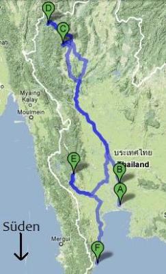 Die Route im Süden